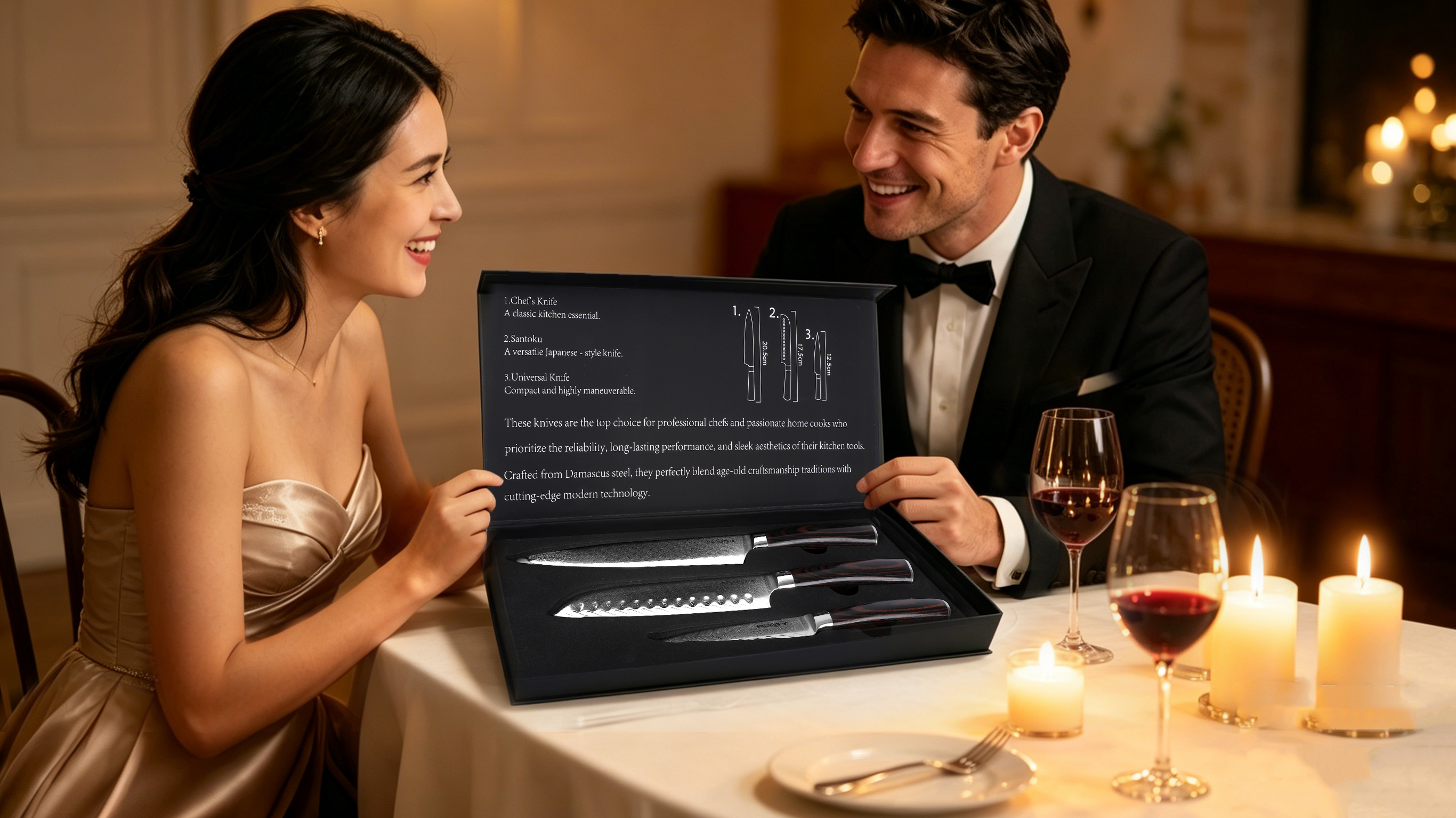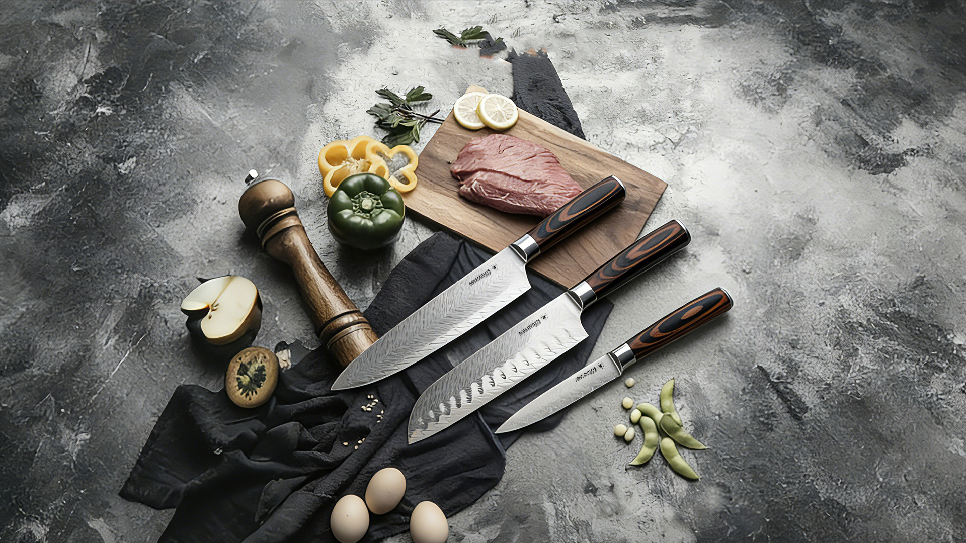 Aries Outlets 3-Piece Japanese Damascus Steel Knife Set